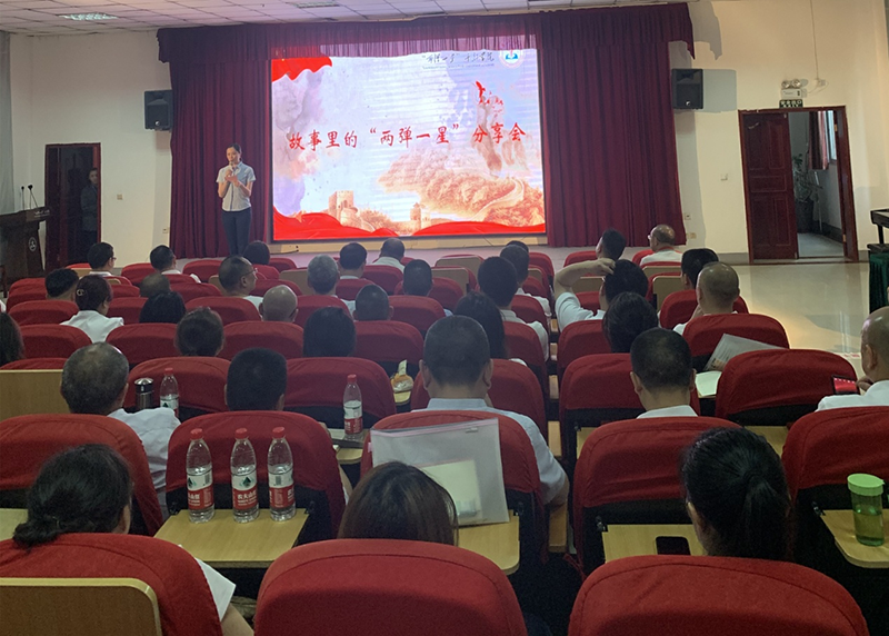 在体验教学环节,讲述人们依次上台分享了《原子弹,从这里出发》、《这个奖牌我不能要》、《钱学森与那青梅竹马的爱人》等近十个故事,与学员们一起深情追忆我国两弹研制老一辈科技工作者“艰苦奋斗干惊天动地事、无私奉献做隐姓埋名人”的感人事迹。