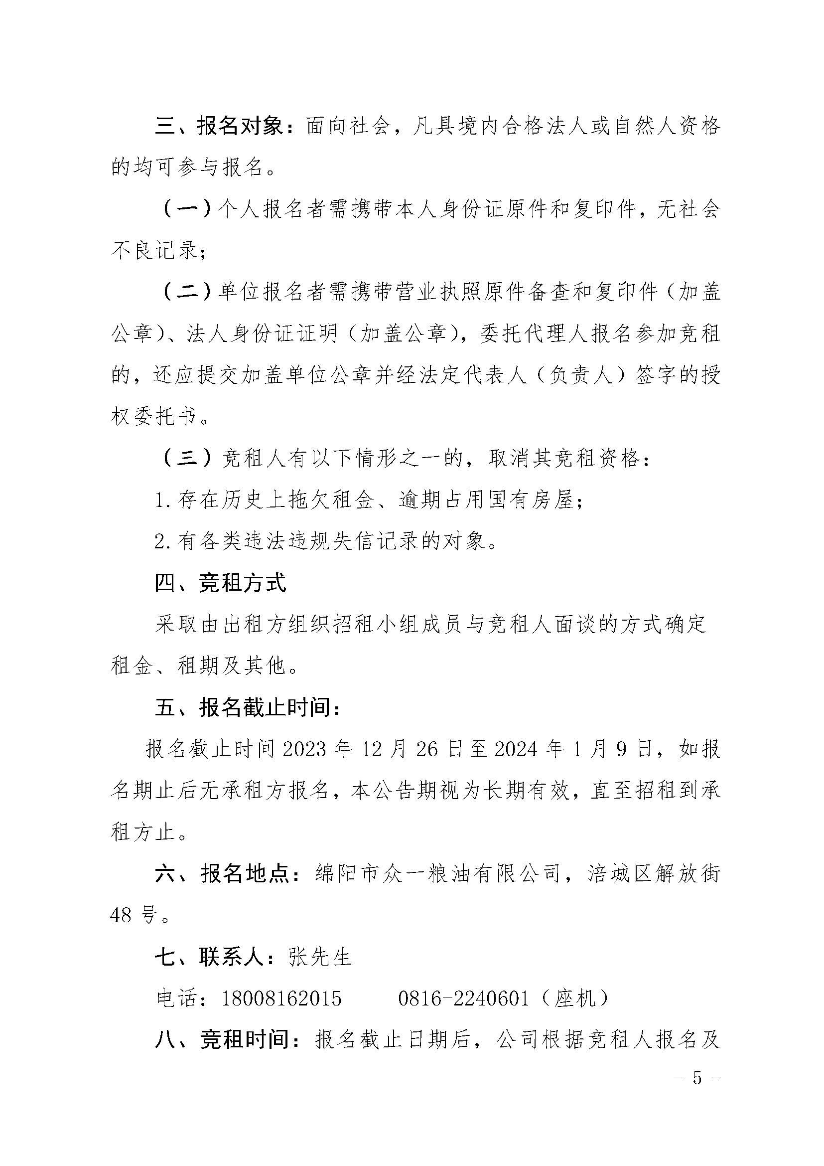 绵阳市众一粮油有限公司资产招租公告