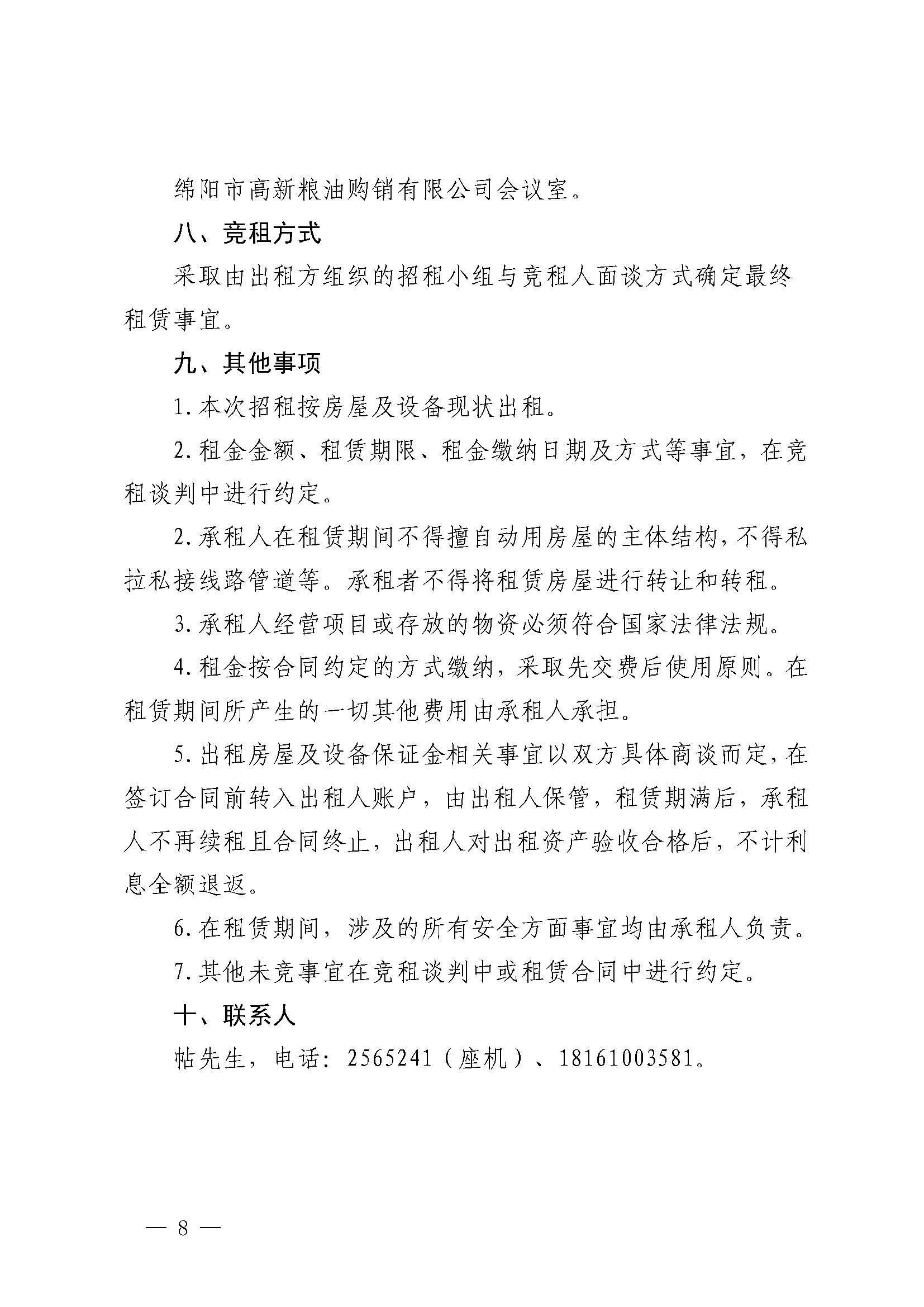 绵阳市高新粮油购销有限公司资产招租公告