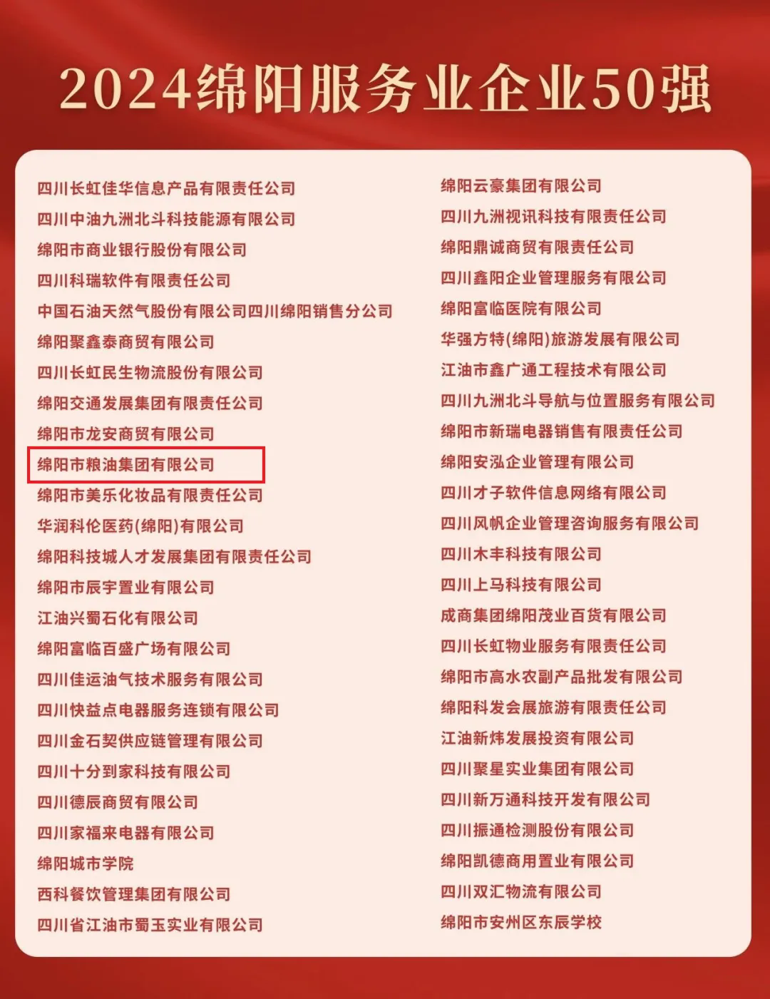12月26日,中国(绵阳)科技城“企业之家”揭牌仪式暨“2024绵阳企业50强”榜单发布活动在绵举行。2138cn太阳城集团位列全市企业50强第30位,服务业企业50强第10位。